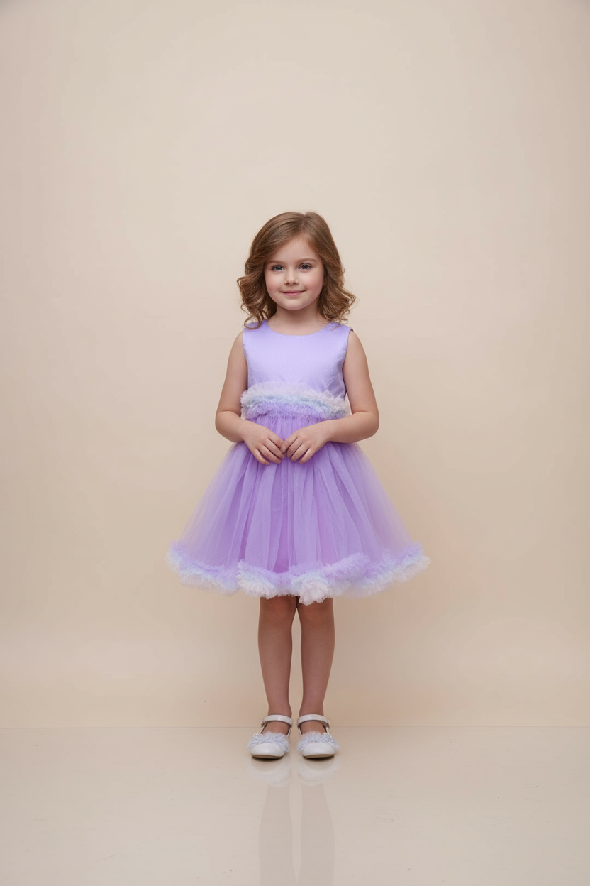 The sleeveless bodice offers a classic round neckline for easy, no-fuss wear, while gentle elastic at the waist ensures a secure and comfy fit. Children can move, dance, and play freely thanks to the feather-light, non-irritating materials—ideal for sensitive skin. Soft pastel pink, white, and lavender accents create a fairy-tale look that’s perfect for birthdays, festive parties, and memorable family gatherings.